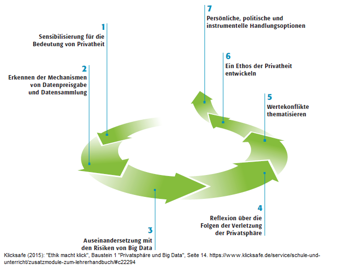 - die Gelegenheit geben, miteinander über das generelle digitale Nutzungsverhalten zu sprechen und darüber, inwieweit Sie als einzelne Nutzende überhaupt Möglichkeiten haben, Ihre persönlichen Daten zu schützen.